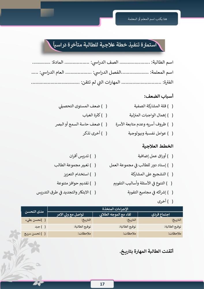 نماذج لرعاية الطالبات :