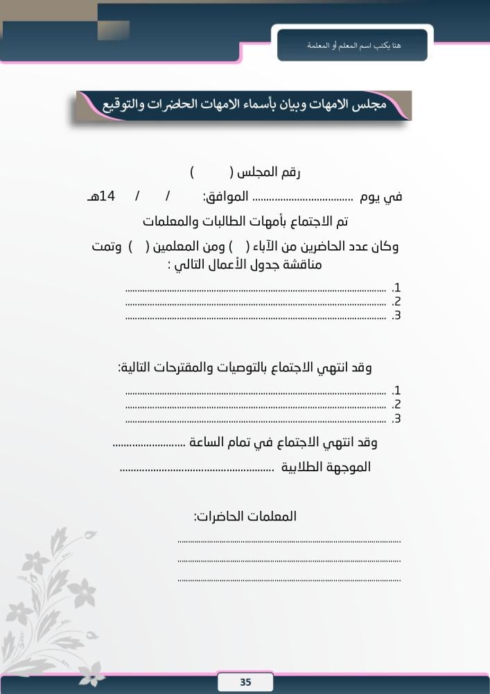 التواصل مع الأسرة، المجالس، وخطابات وليات الأمور .