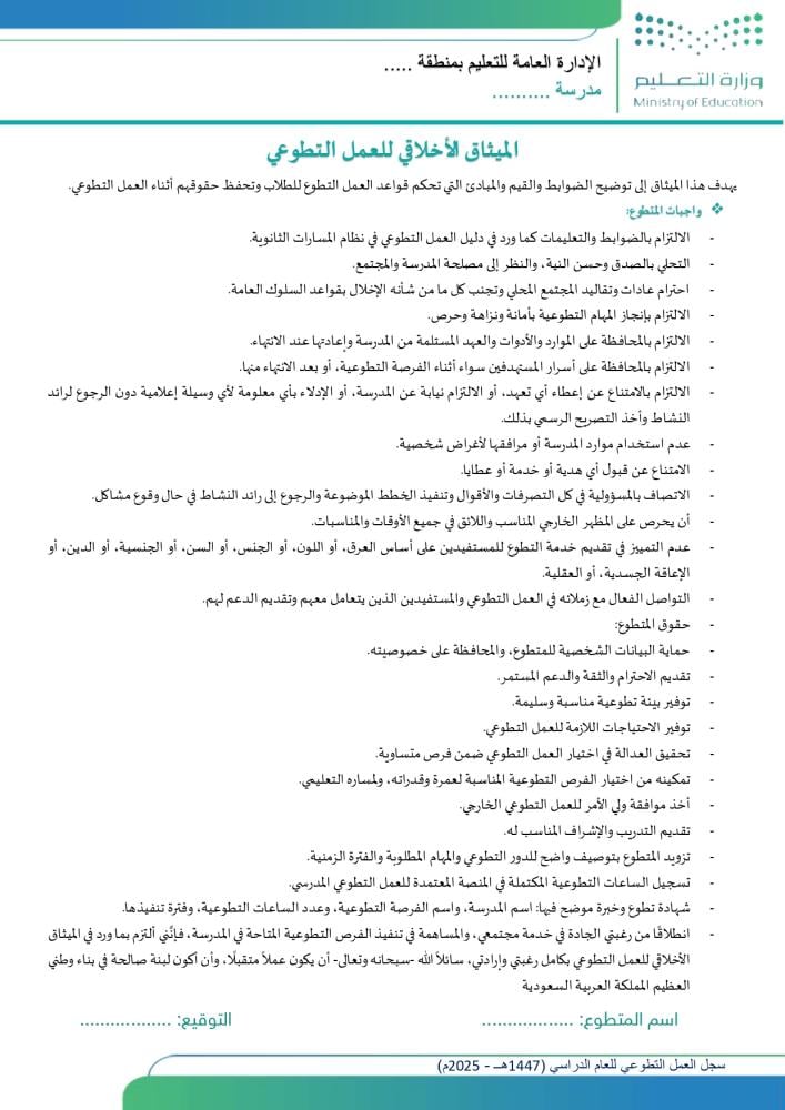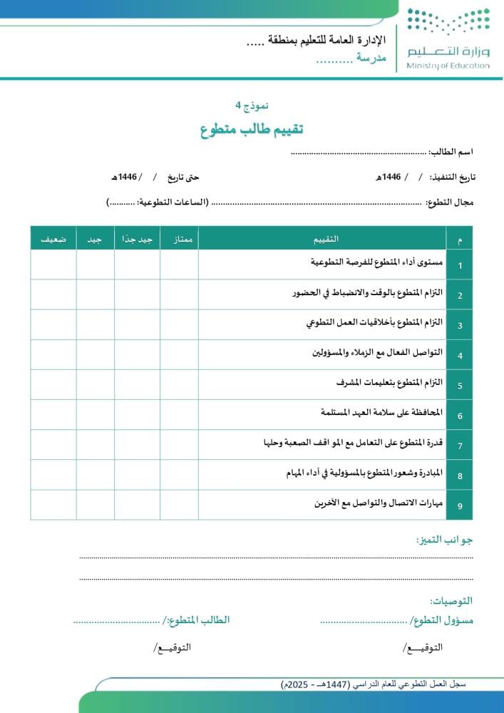 - اعتماد خطط التطوع لكل مرحلة دراسية.
