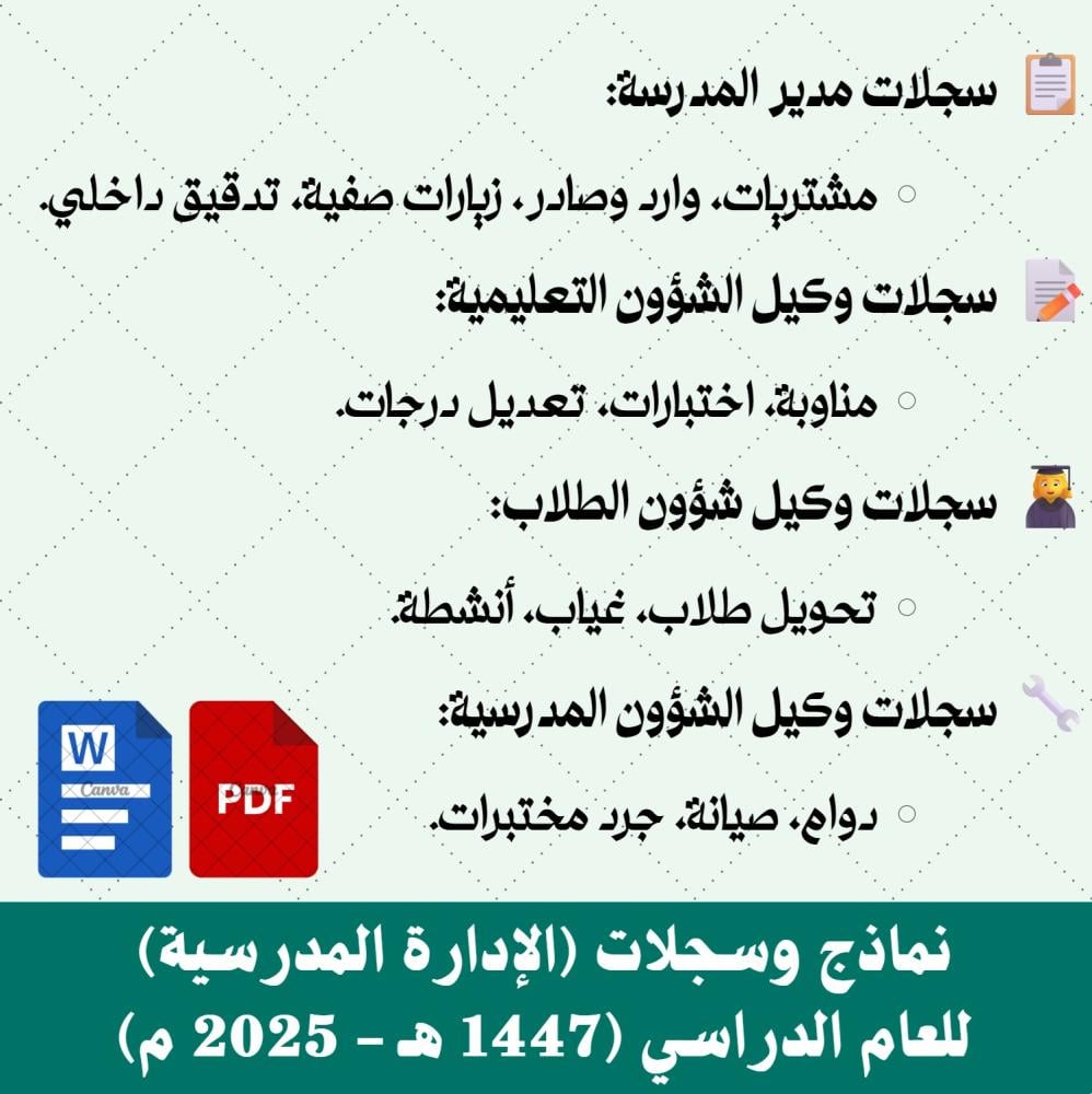 📚 نماذج وسجلات الإدارة المدرسية 1447هـ (2025م) - الحل الشامل لإدارة مدرستك بكفاءة!