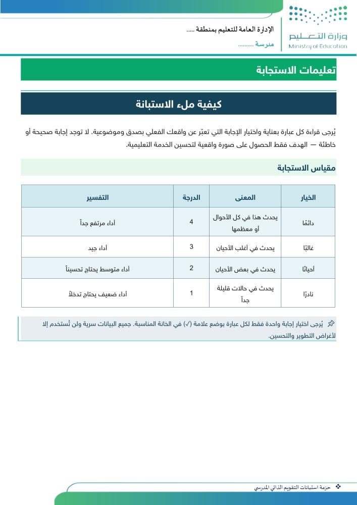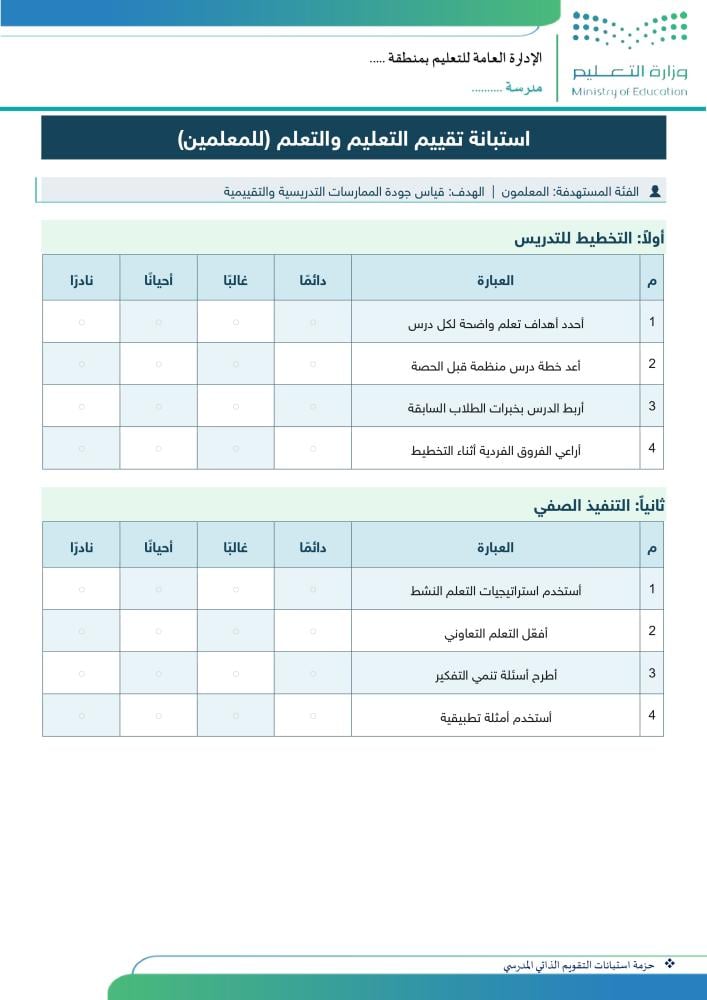 - ملف Word (للطباعة والنشر): يتضمن استبانات التقويم الذاتي الشاملة الجاهزة للاستخدام.