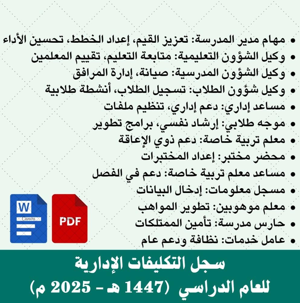 🌟 سجل التكليفات الإدارية للعام الدراسي 1447 هـ (2025 م) - أداة تنظيمية فعالة لإدارة المدرسة! 📚