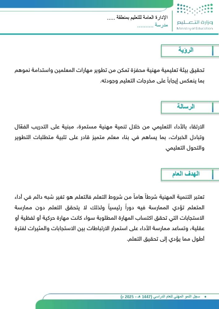 - الخطة الزمنية للتنمية المهنية (داخل المدرسة).